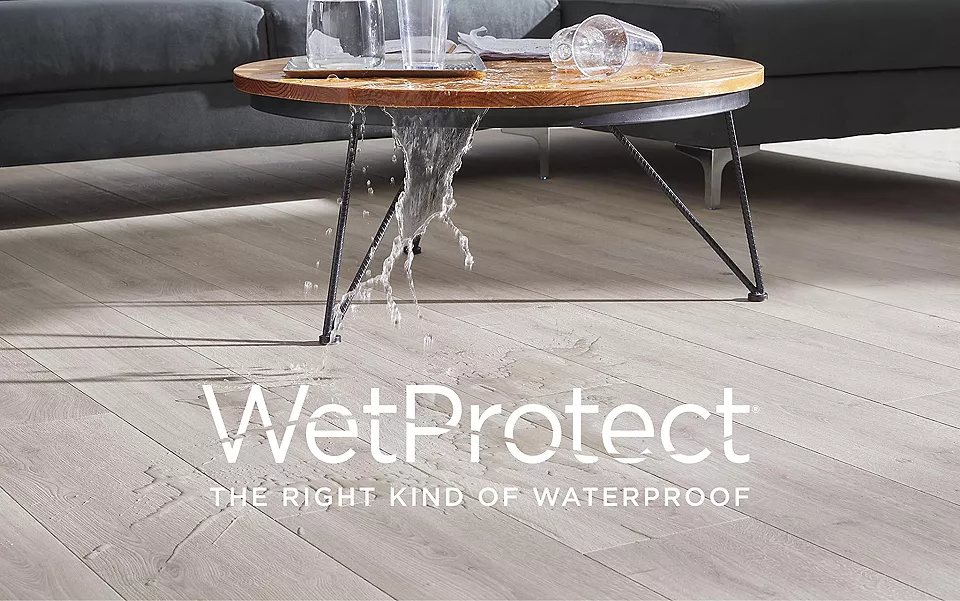 Water will pool on the surface of standard laminate floors. Since this flooring cannot tolerate standing water, it should be cleaned up immediately. Laminate marked ‘waterproof,’ on the other hand, will not be damaged by standing water as long as it is cleaned up in a reasonable amount of time. The manufacturer specifies in the product guidelines how this period is defined. Usually, water must be cleaned up in about one day or damage may occur.